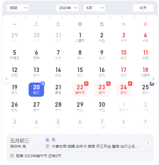 2023年06月22日(周四)放假休息,06月25日(周天)开始恢复上班。